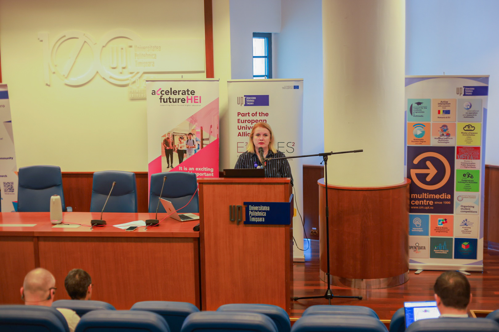 Cuvântul de deschidere a fost oferit de Dr. ing. Diana Andone şi de prorectorul UPT, Prof. univ. dr. ing. Liviu Marşavina, care au subliniat importanța parteneriatelor internaționale în special prin Alianța Universitară Europeană E³UDRES² — şi a inițiativelor care sprijină activ dezvoltarea educației la toate nivelele, precum proiectul Accelerate Future HEI.