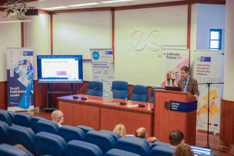 Universitatea Politehnica Timișoara (UPT), prin Departamentul de ID/IFR și Educație Digitală în colaborare cu Alianța de Universități Europene E³UDRES², proiectul Accelerate Future HEI și cu sprijinul IEEE Romania, a găzduit cu succes cea de-a XIIi-a ediție a Workshopului Internațional Open Education & Science Practices,vineri, 6 martie 2026, în cadrul Săptămânii Educației Deschise 2026 (Open Education Week), susținută de Open Education Global.