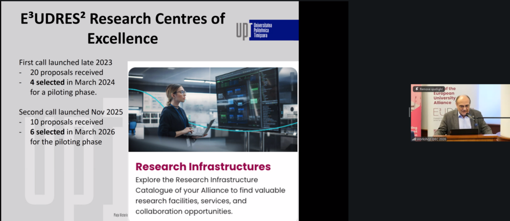 De asemenea, a fost evidențiată platforma E³UDRES² ARENA, care urmează să devină hub-ul digital central al alianței, accesibil pentru peste 100.000 de studenți, cercetători şi personal academic.
